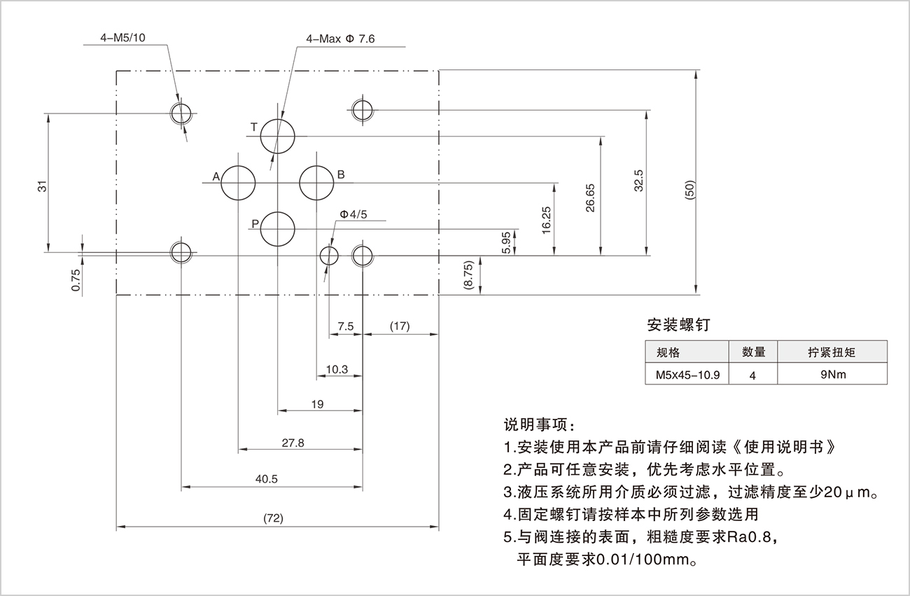 油液最高允許污染度按NAS1638第9級, 推薦過濾器過濾精度最小β10≥75。 |