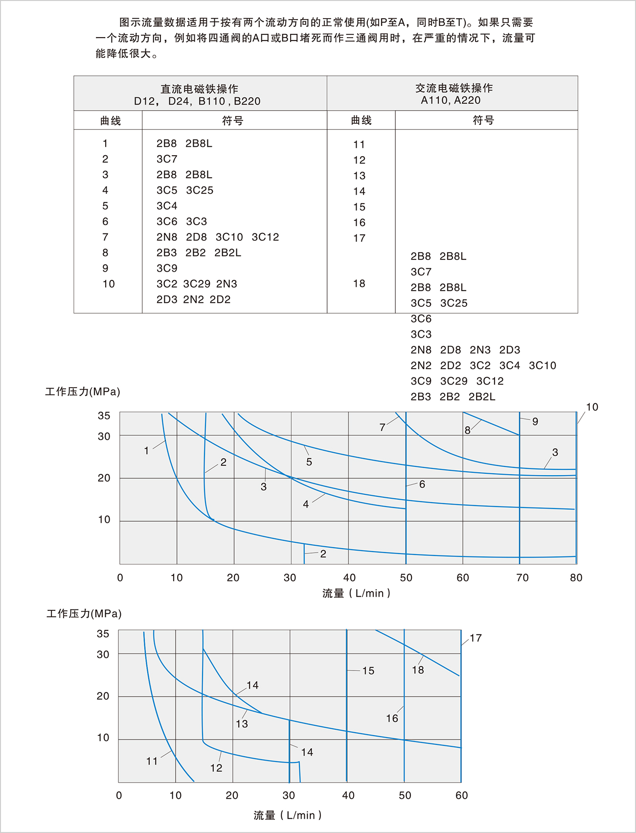 03規(guī)格 工作極限 (在電磁鐵發(fā)熱和欠電壓10%且回油箱無(wú)負(fù)載的情況下測(cè)得)