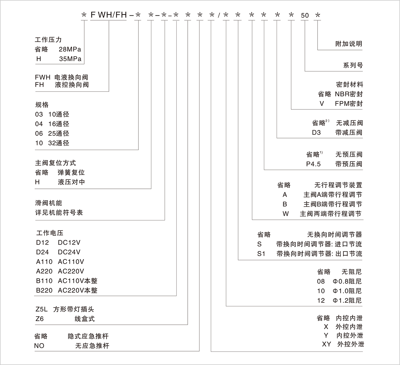 1、用于中位卸荷換向閥,需單獨(dú)訂貨,電液10通徑(FWH-03)無此閥。