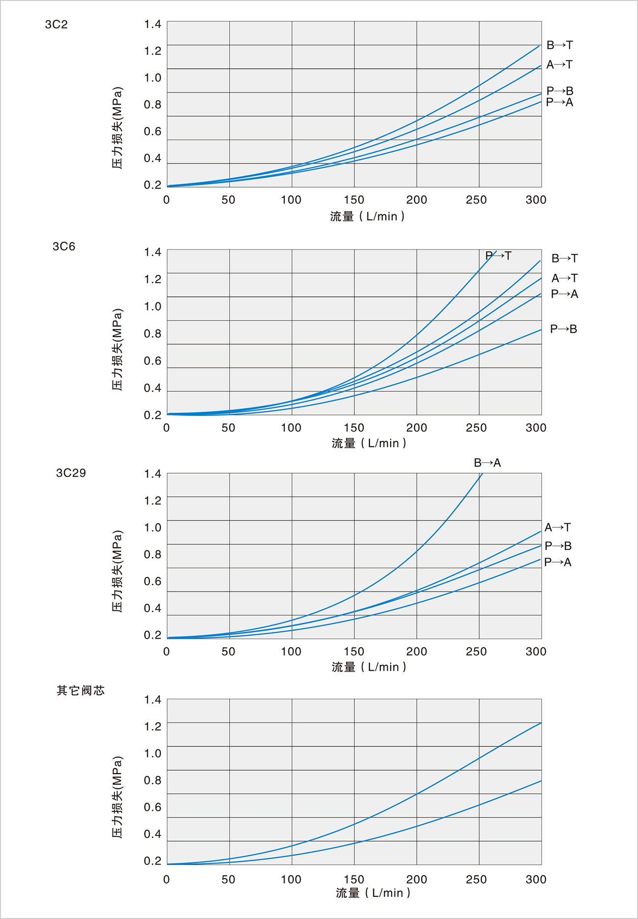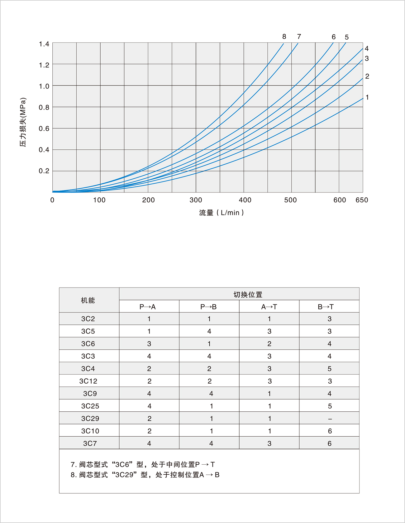3)在中位油P至T或當(dāng)閥經(jīng)中位(二位閥)時,流量足夠保由P至T有壓降0.65MPA,才能用控制油控。
