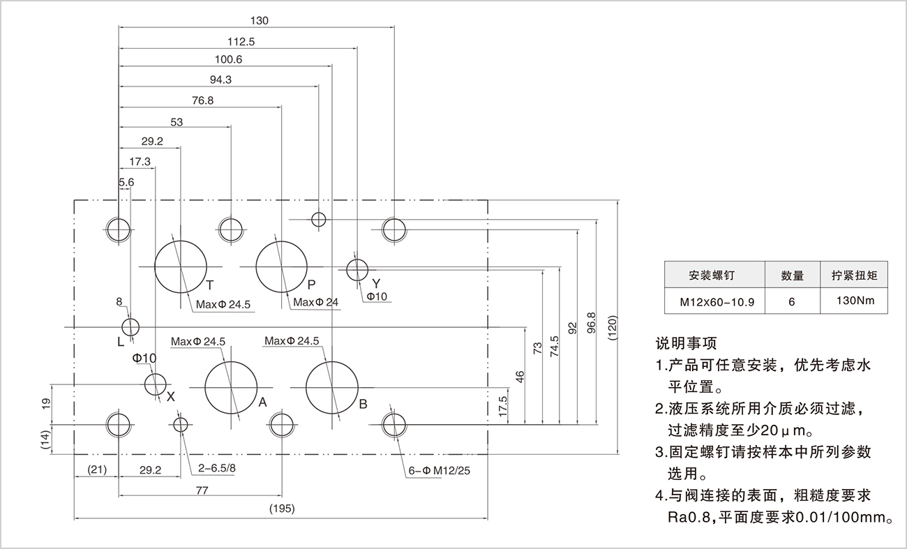 油液最高允許污染度按NAS1638第9級,推薦過濾器過濾精度最小β10≥75。 |