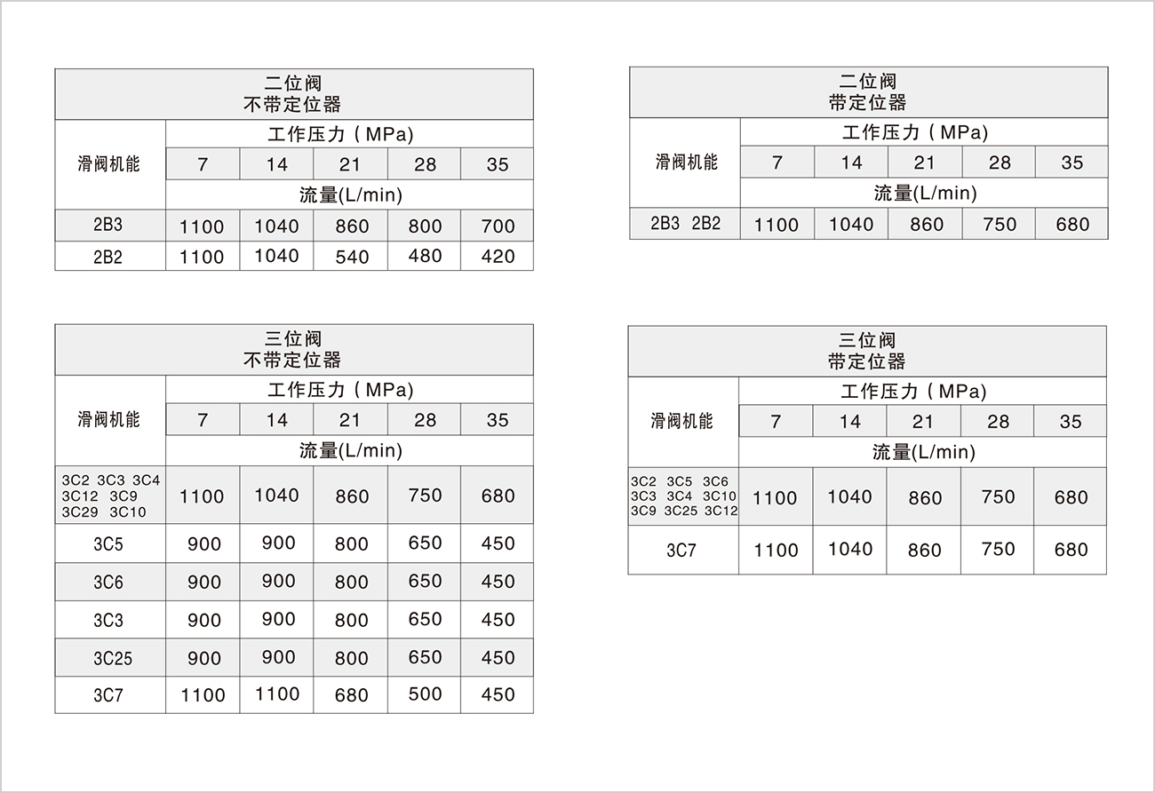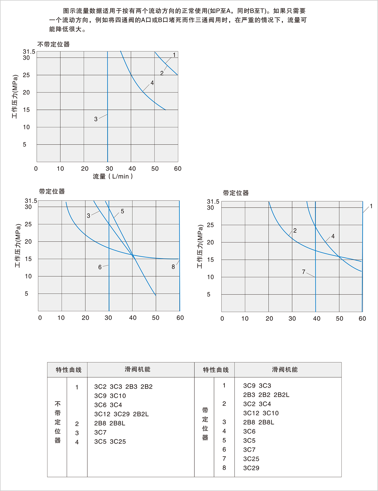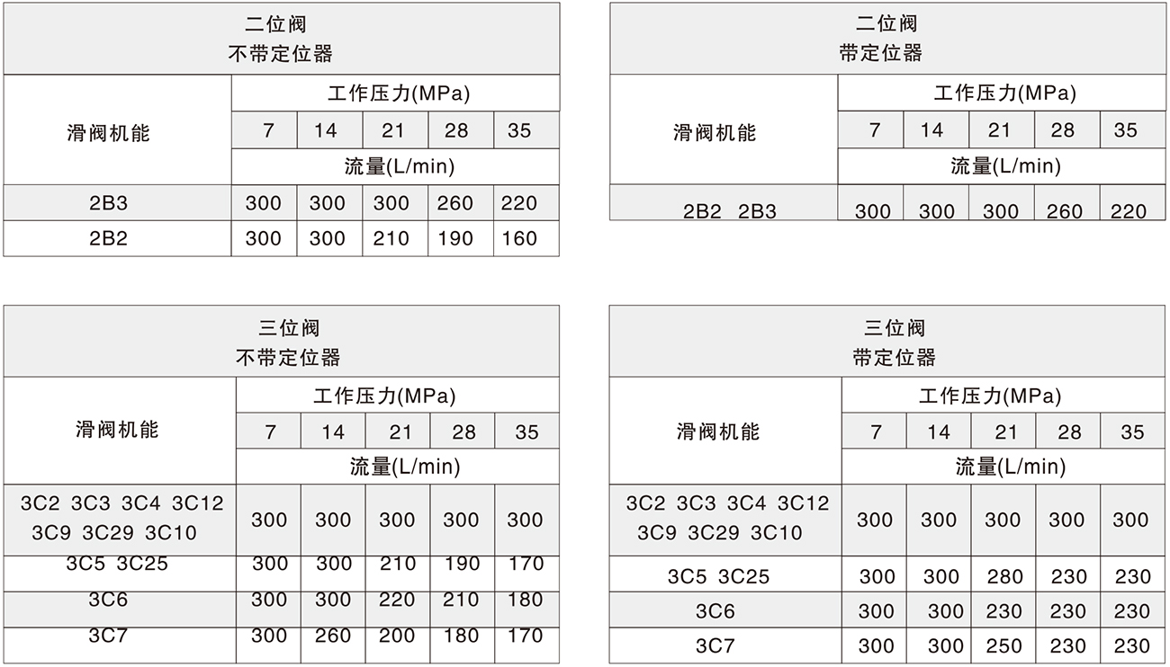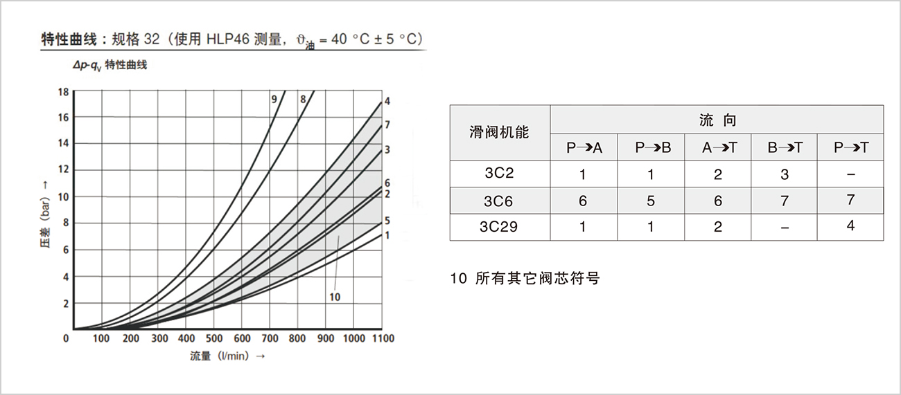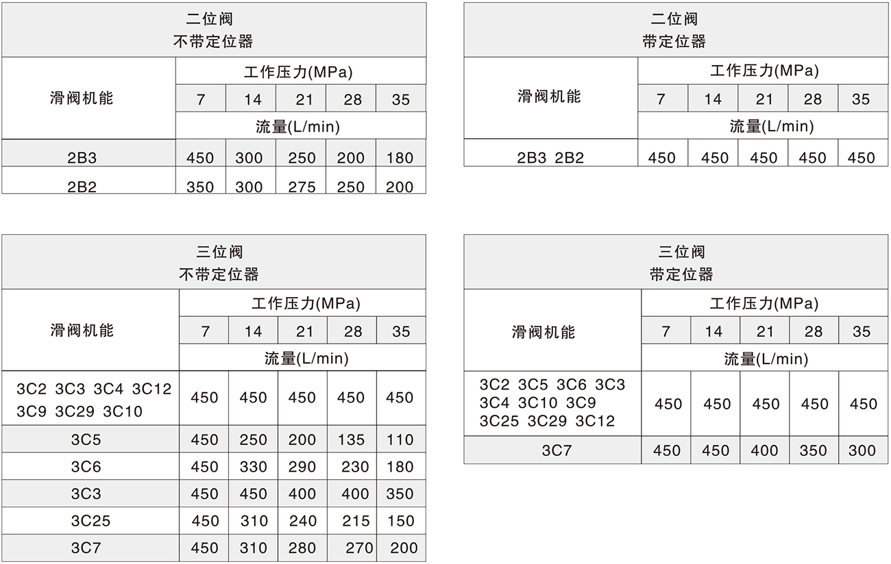10規(guī)格 工作極限 (在電磁鐵發(fā)熱和欠電壓10%且回油箱無負載的情況下測得)