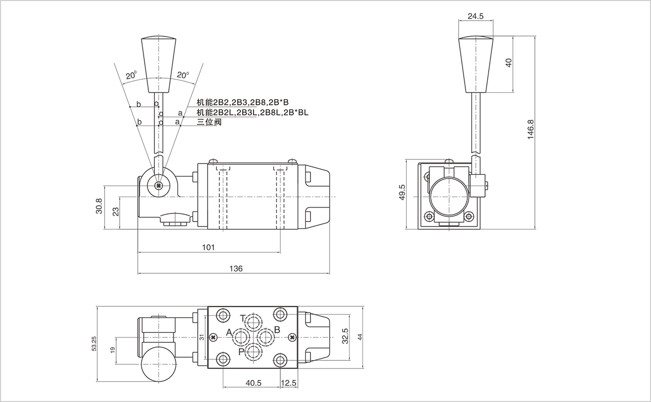 手動換向閥是依靠手動杠桿的作用力驅動閥芯運動來實現(xiàn)油路通斷或切換的方向控制閥。