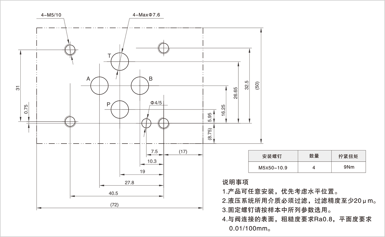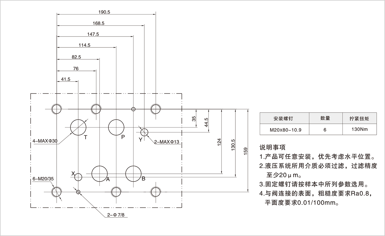 油液最高允許污染度按NAS1638第9級, 推薦過濾器過濾精度最小β10≥75。 |