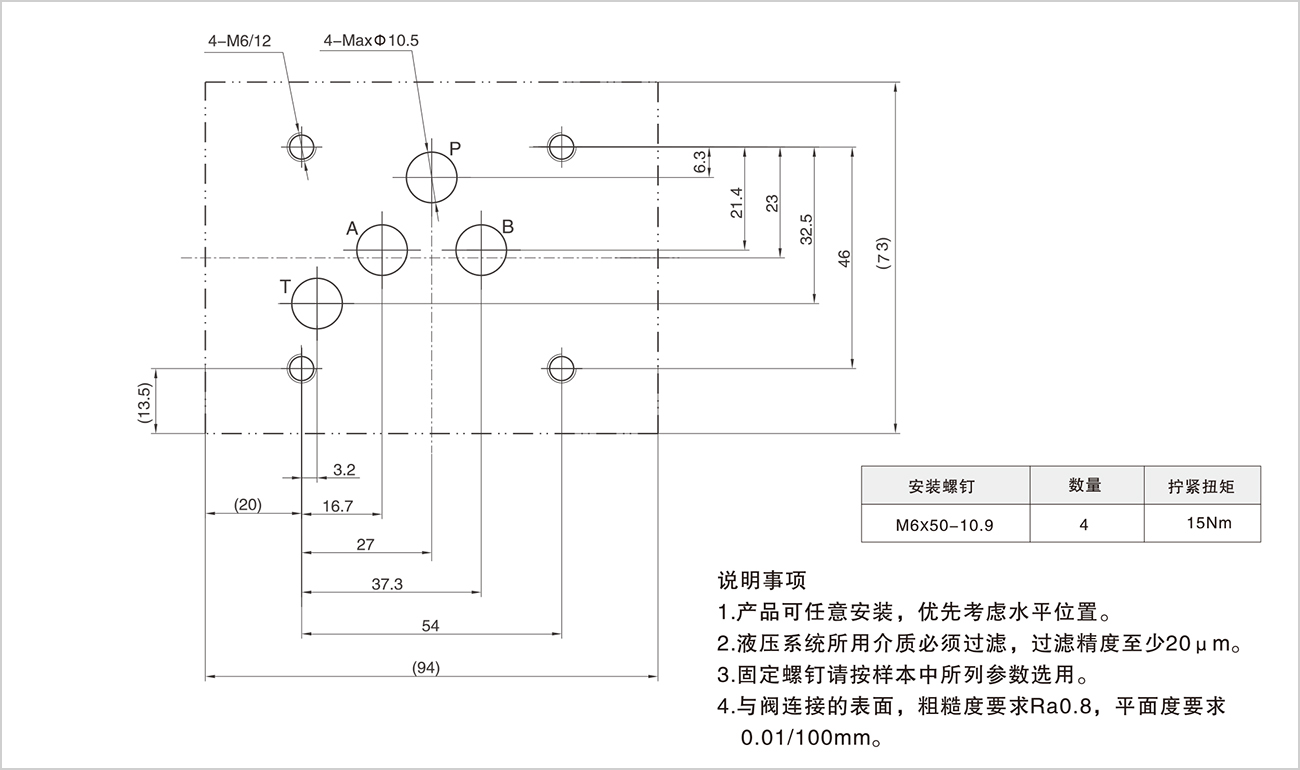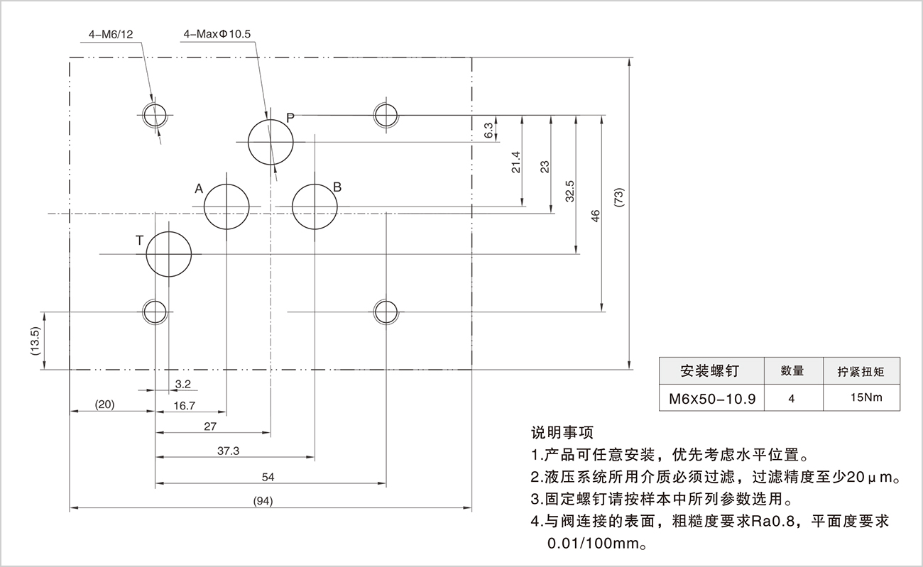 04規(guī)格 工作極限 (在電磁鐵發(fā)熱和欠電壓10%且回油箱無負載的情況下測得)