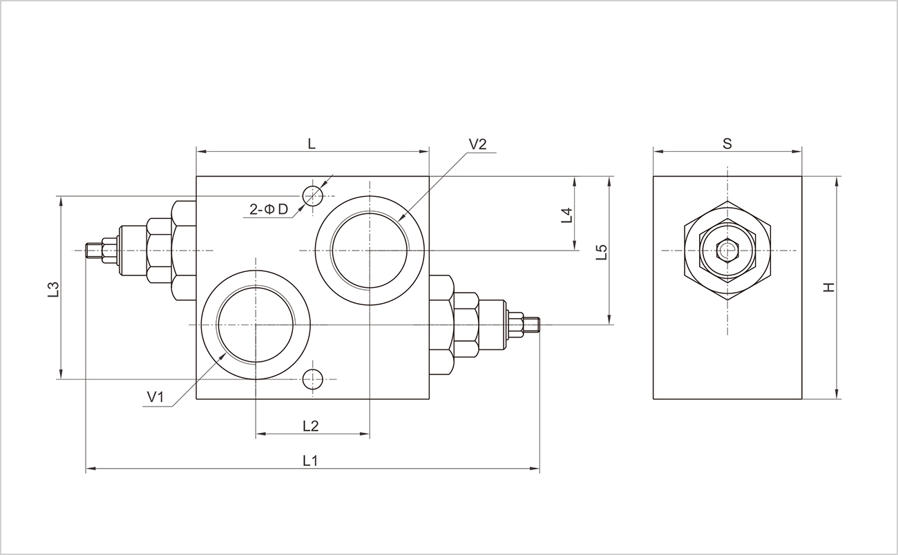 連接V1和V2到壓力流或者某個執(zhí)行元件(液壓馬達)。余下的油口V1和V2的連接方式與前者相反。為了避免出現(xiàn)壓降,強烈建議安裝到執(zhí)行元件上。
