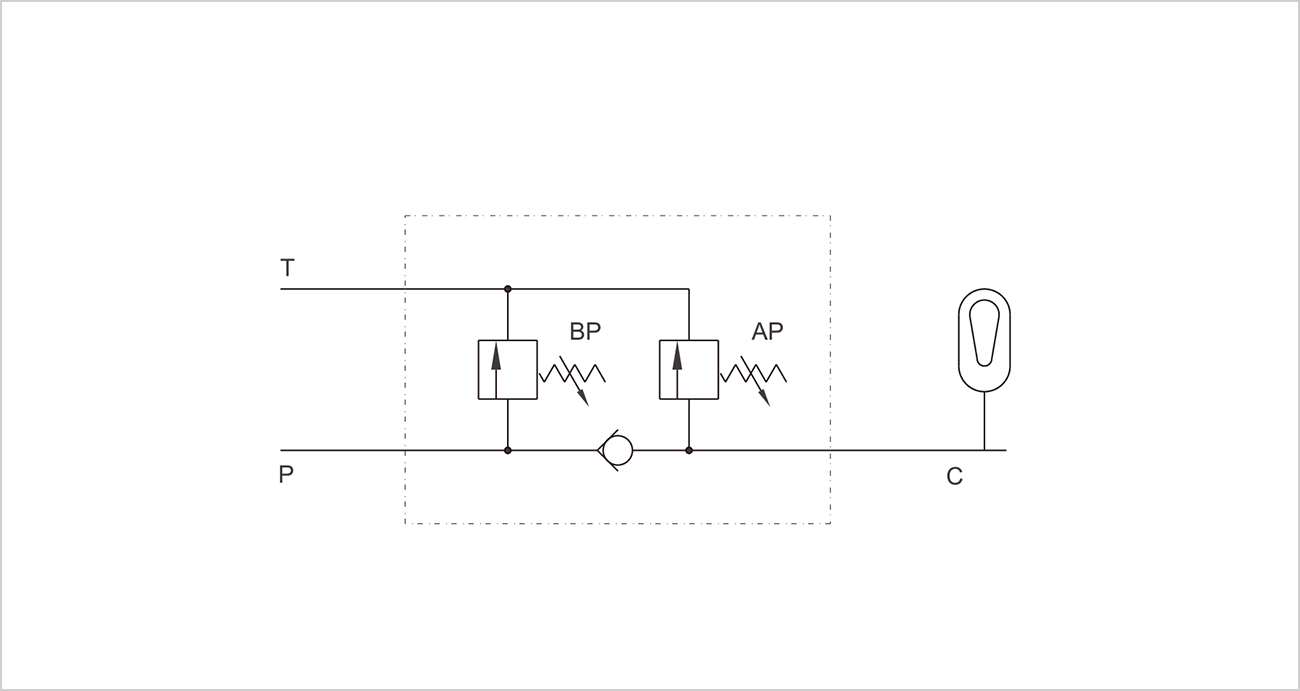 閥P口連接機器進油口, T口外泄或連接至回油箱,C連接至系統(tǒng)。