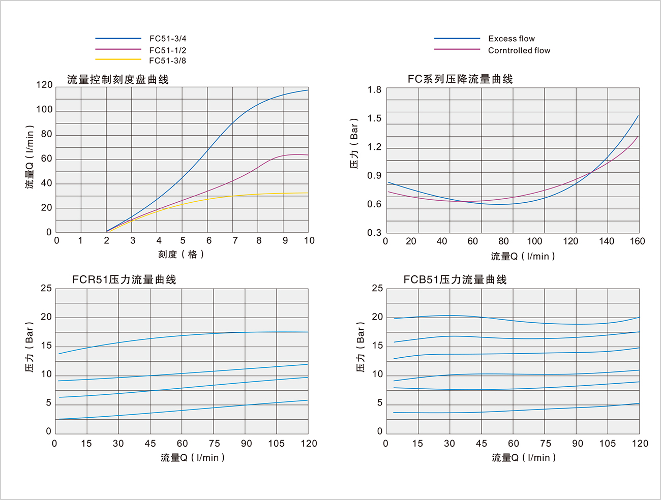 精磨的閥腔與閥芯之間緊密配合,泄露??;每個(gè)FC系列閥均做關(guān)閉、最大流量和壓力補(bǔ)償試驗(yàn)。標(biāo)準(zhǔn)的三口閥能通過(guò)油液流出兩個(gè)出口進(jìn)行流量壓力補(bǔ)償。