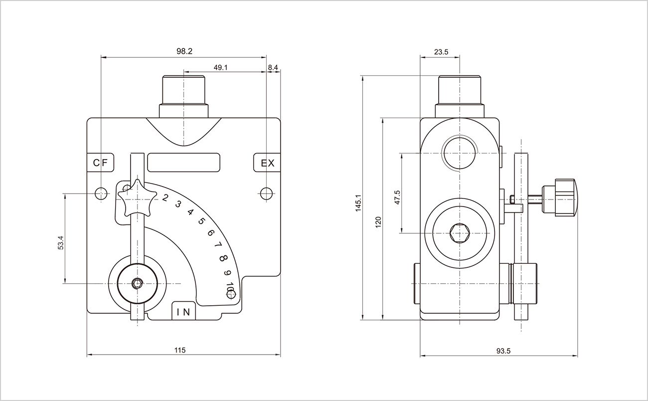 1) 可調(diào)節(jié)鋼球彈簧型溢流閥-可調(diào)節(jié)鋼球彈簧型溢流閥(R)和可調(diào)節(jié)先導(dǎo)式鋼球彈簧型溢流閥(B)允許客戶的壓力補(bǔ)償油液達(dá)到溢流閥設(shè)定的壓力。一旦CF口保持的壓力超過(guò)溢流閥的設(shè)定壓力,油液就會(huì)分流到EX口。EX口必須接回油箱。兩種溢流閥的標(biāo)準(zhǔn)出廠設(shè)定均為11MPa,可在0.5到24MPa之間調(diào)節(jié)。選項(xiàng)B比R的優(yōu)勢(shì)在于峰值壓力無(wú)論流量大小都一樣。B選項(xiàng)同時(shí)可以在油液通過(guò)鋼球彈簧時(shí)保持壓力穩(wěn)定。