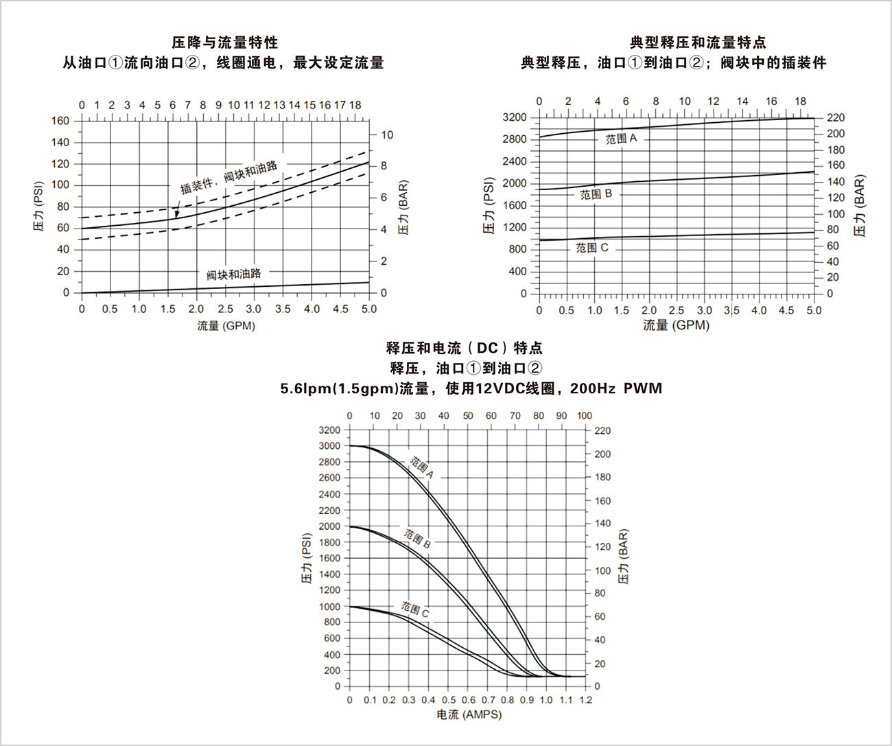 控制電流由零變到最大時的工作溢流壓力范圍 |