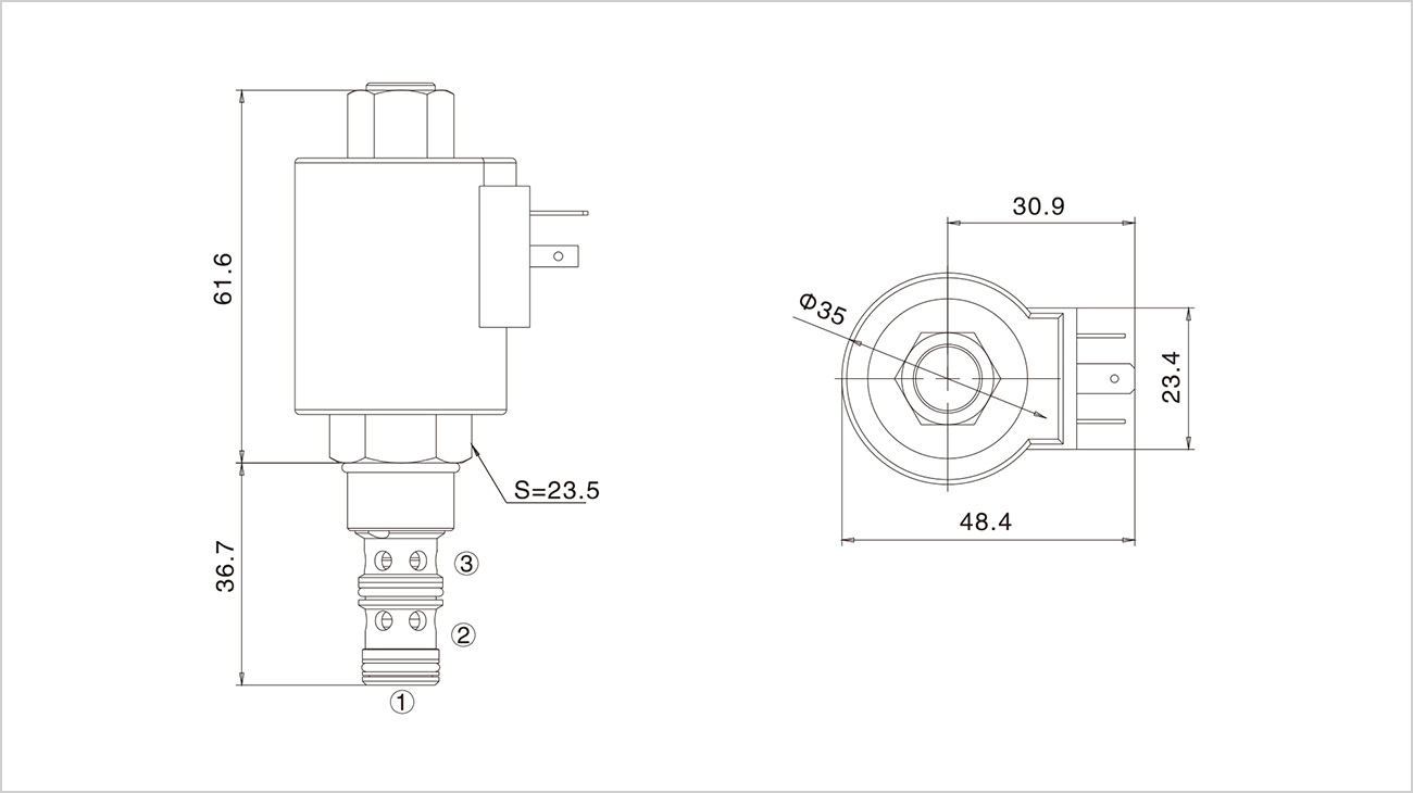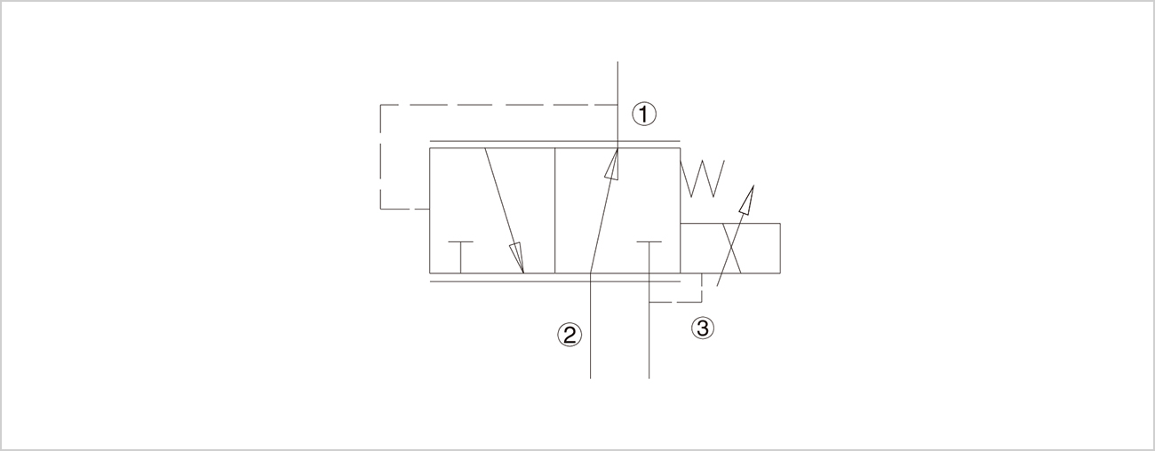 自由流通:①到②,線圈通電; 溢流:①流向②,線圈斷電 |