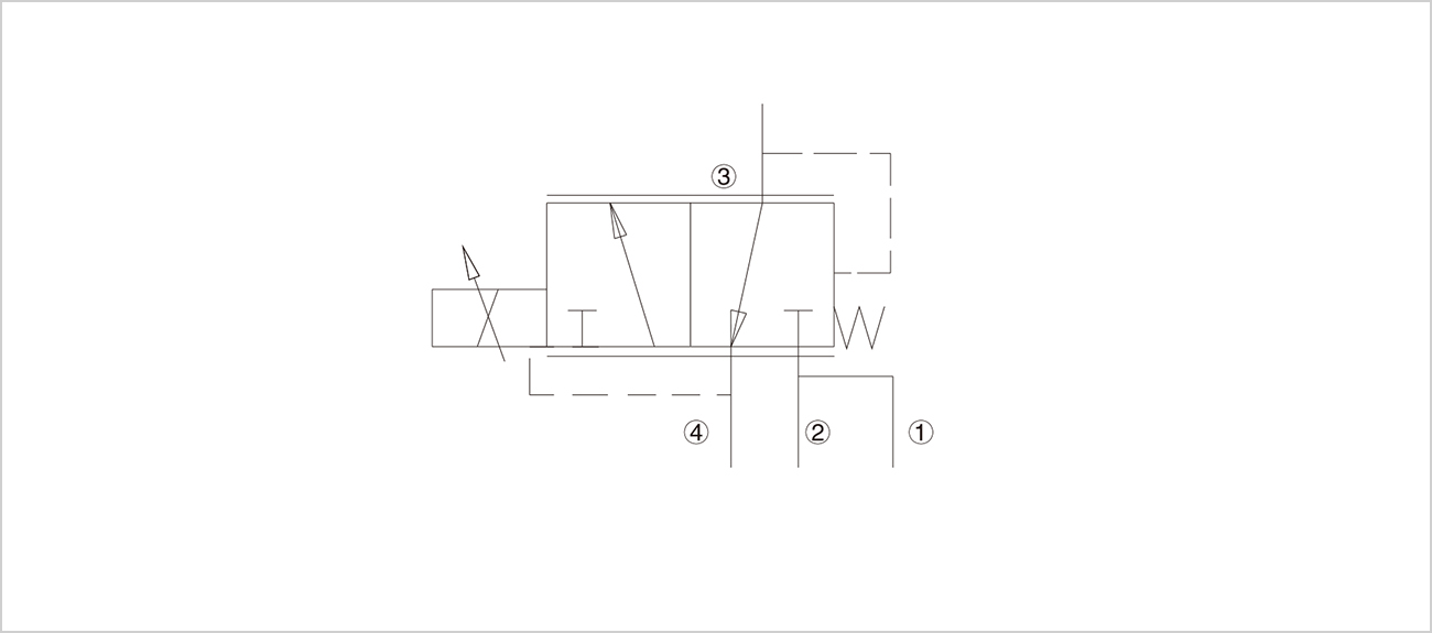 自由流通:線圈斷電時③到④雙向流動; 減壓工況:線圈通電時②到③; 溢流:線圈通電時③到④;油口①非外部聯(lián)接 |