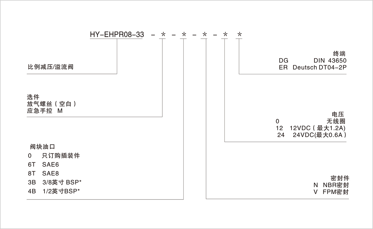 線圈中無電流時,HY-EHPR08-33允許油液從①自由流向油口 ③。線圈通電時,②將連至①??刂疲p壓)壓力將隨著線圈中電流的增大而成比例地增大。如果①處的壓力超過線圈的設(shè)定壓力,則在油口 ③溢流。