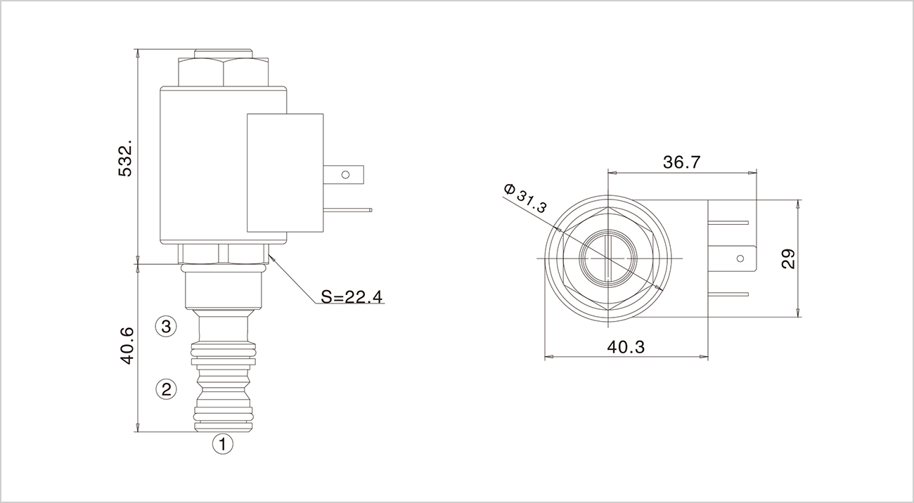 自由流通:線圈斷電時①到③; 減壓工況:線圈通電時②到①; 溢流工況:線圈通電時①到③. 油口①非外部聯(lián)接 |
