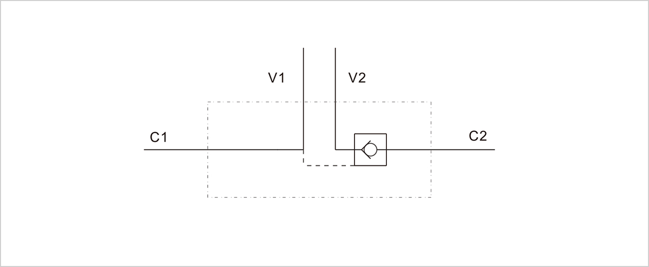 連接V1 和V2 到壓力流量,連接 C1 到執(zhí)行機(jī)構(gòu)的自由流側(cè),連接C2 到執(zhí)行機(jī)構(gòu)想要被阻斷的一側(cè)。