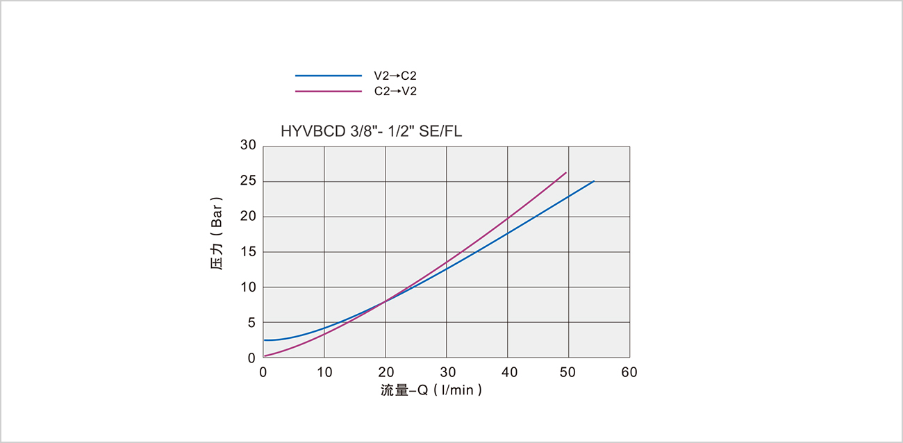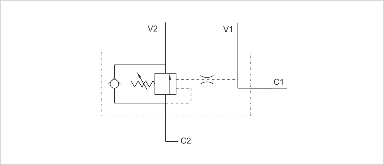 連接V1和V2到壓力流,連接C1到執(zhí)行元件的自由流側(cè),連接法蘭C2到執(zhí)行元件,由執(zhí)行元件截止回流。V1和V2油口可互換。