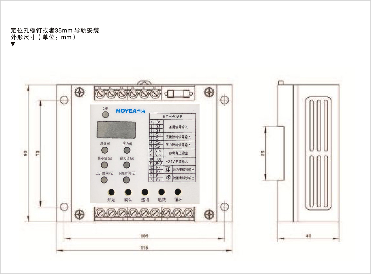 1:利用放大器自帶的10V參考電壓輸出,只需接入10K或20K的電位器,將電位器接入VR+和VR-,另一輸出端則接入CI+,CI-接VR-,接一個(gè)電位器即可控制比例閥;2:外部信號(hào)由控制器(比如PLC或者自制的控制器)接入,信號(hào)類型為差分信號(hào),差分電壓范圍為0……+10V,控制壓力電磁閥的接線端子為CI+,其中CI+接信號(hào)高電位端,CI-接低電位端;