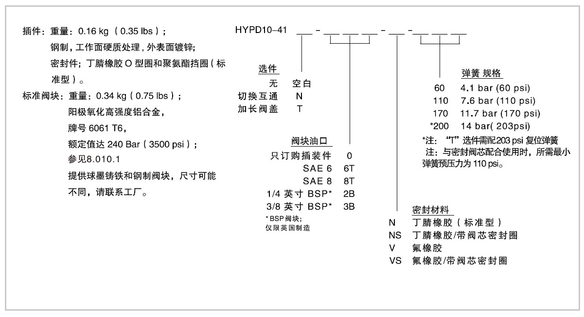 6061-T6 鋁,允許使用最大壓力207 bar,鋼和球鐵允許使用最大壓力350 bar |