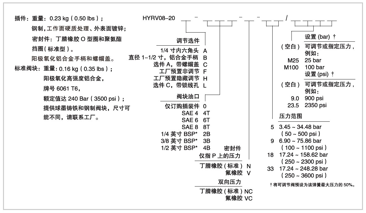 6061-T6鋁,允許使用最大壓力207 bar,鋼和球鐵允許使用最大壓力350 bar |