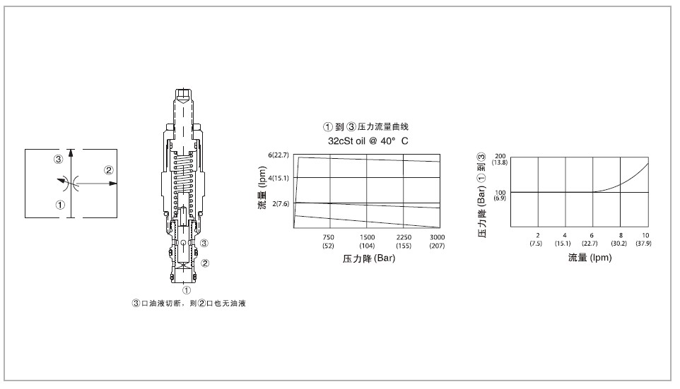 不管③口負(fù)載壓力或旁路②口負(fù)載壓力如何變化,從③口流出的流量維持不變;油液從①口到③口的壓降一旦達(dá)到最小值